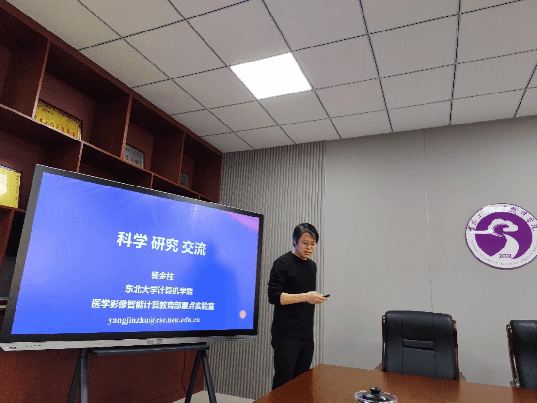 讲座伊始,院长冯海文对杨金柱教授进行了介绍。杨金柱教授不仅是医学影像智能计算教育部重点实验室的领军人才,在图像处理和医学影像分析领域享有盛誉,还成功主持了多项国家自然科学基金重点项目,具有深厚的学术底蕴和丰富的实践经验。