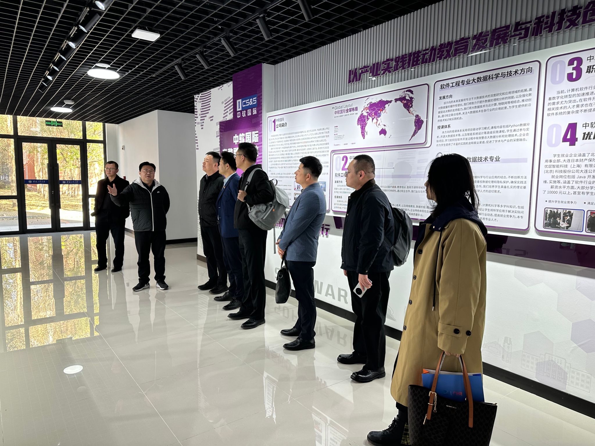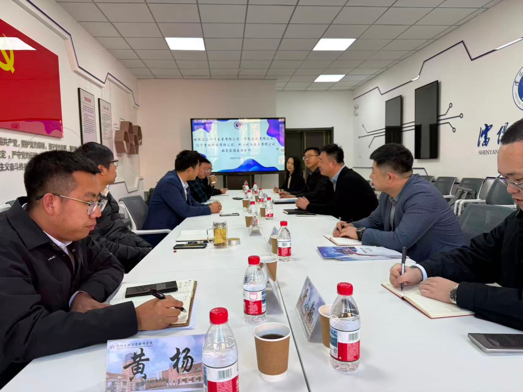 10月27日,辽宁省辽咨人才发展有限公司副总经理庄勇及公司培训部经理宋欣洋、华为技术有限公司院校人才培养业务经理冯国龙、辽宁育能科技有限公司副总经理王建华、科大讯飞股份有限公司智慧城市行业经理于小翔一行5人受邀到访yl88858永利中国,围绕构建校企协同创新机制、优化人才培养体系、推进毕业生高质量就业等议题,开展座谈交流,并实地调研参观了学院产教融合实践基地和科研平台。座谈交流会在yl88858永利中国307会议室举行,由学院党总支书记朱永杰主持,学院领导班子全体成员及相关教师代表参会。