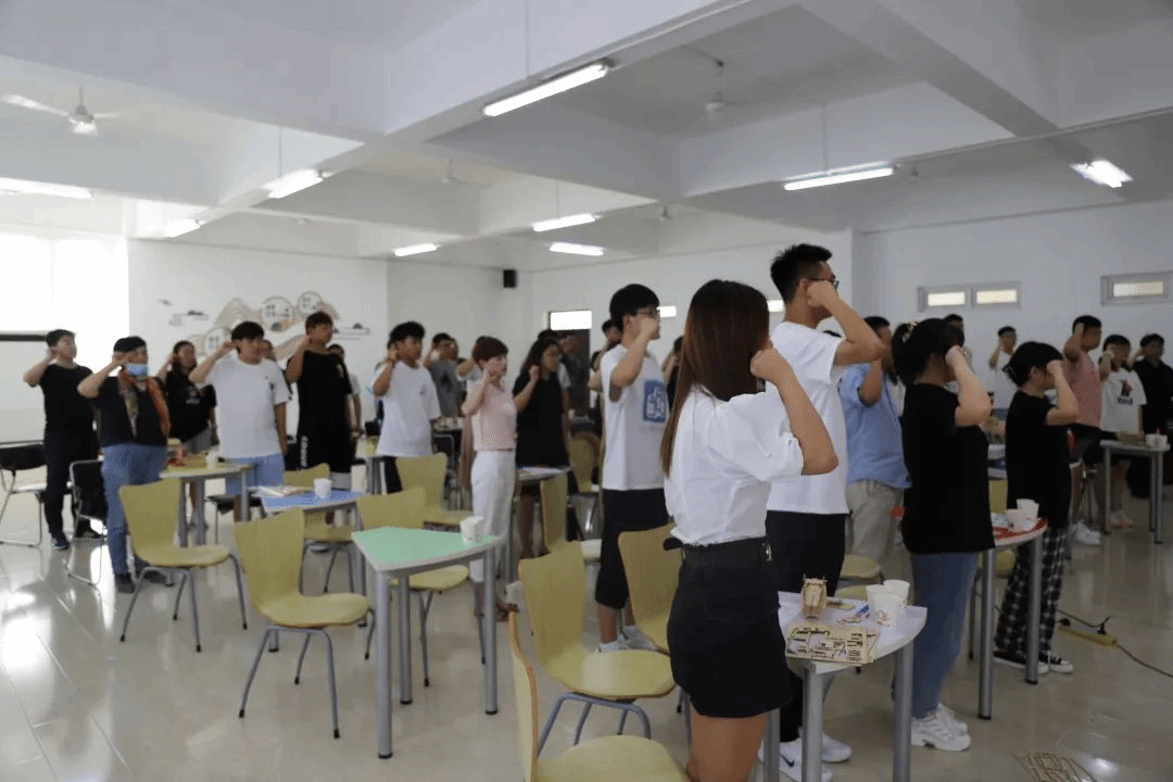 随后,全体党员师生重温入党誓词。党员们面对鲜红的党旗,高举右拳,字字铿锵有力,句句掷地有声,宣誓词响彻整个大厅,也牢牢记在了大家的心间。