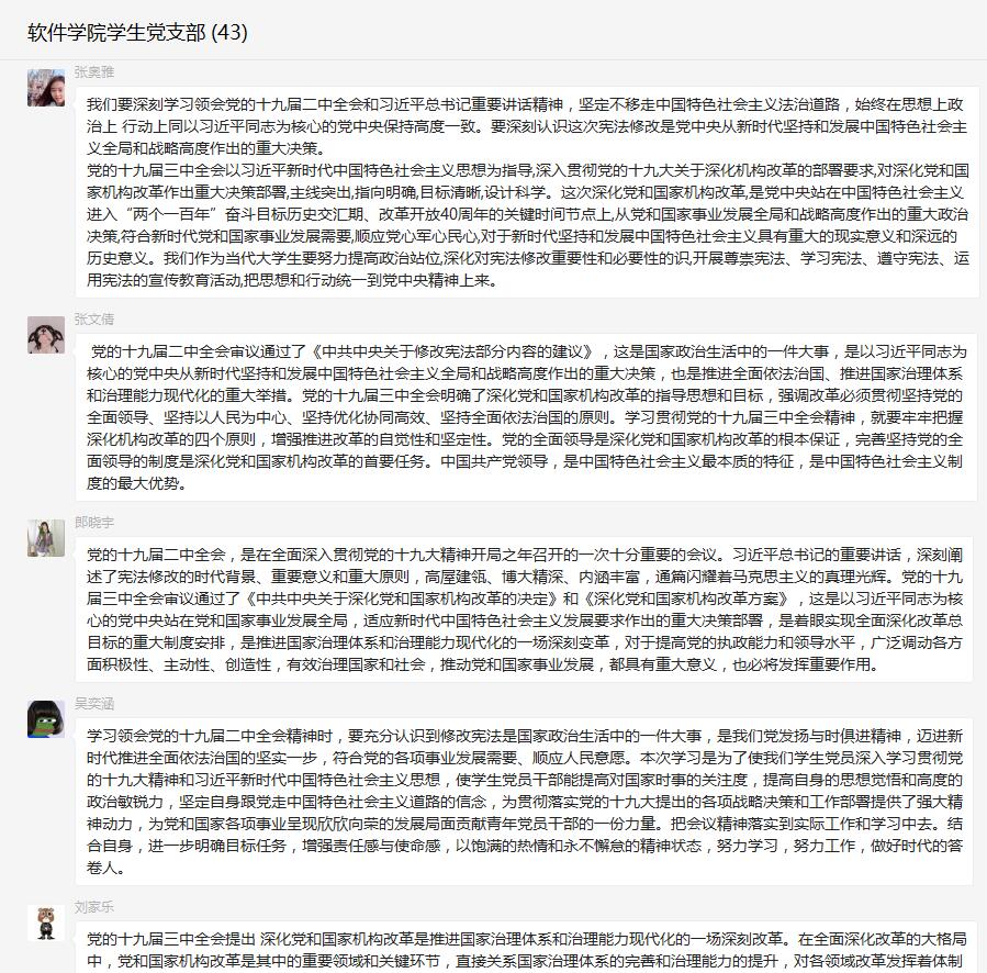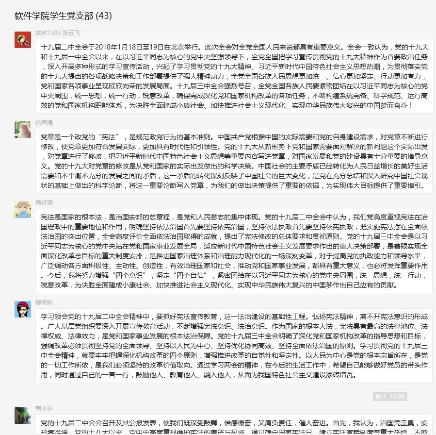 为深入学习贯彻中共十九届二中、三中全会的内容和精神,yl88858永利中国学生党支部于3月末召开中共十九届二中、三中全会公报专题学习会。全体学生党员学习热情高涨。