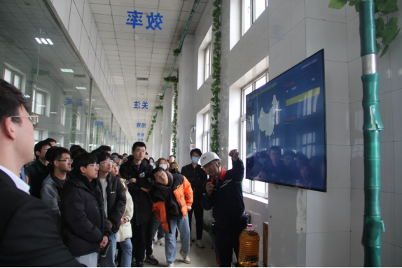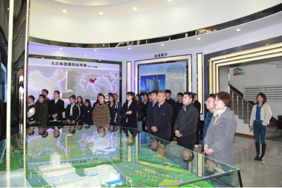 在“九三集团”,有关负责人介绍企业发展现状,并带领调研团队参观灌装车间,了解生产线上传感器、信息溯源等信息化手段。