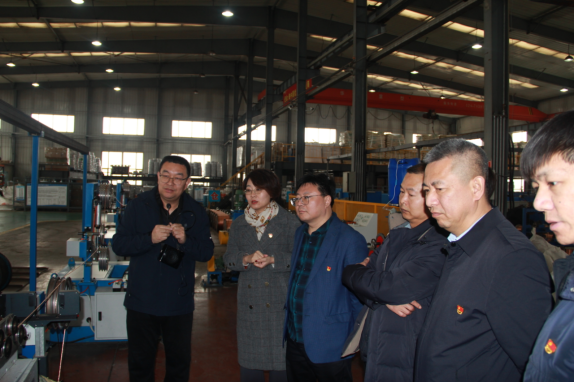 在“津达电缆”,企业技术负责人为调研团队详细介绍企业在铁岭发展情况,以及当前产品类型,并带领调研团队深入企业一线参观学习。郝艳君书记等一行人重点参观了由沈阳理工大学参与研发设计的电缆检测系统。