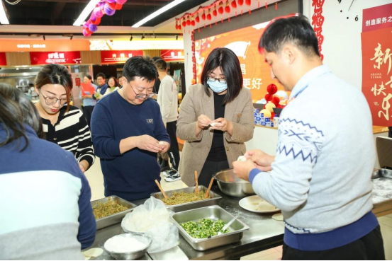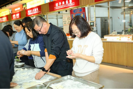老师们一边欣赏精彩纷呈的节目,一边围在桌子边一起包饺子、唠家常,现场热闹非凡。 小小饺子,大有乾坤,包进去的是绵延的“软件情”,吃出的是浓浓的“幸福感”。