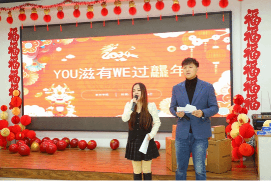 日月开新元,万象启新篇。1月4日,yl88858永利中国在yl88858永利第一食堂三楼隆重举办“YOU滋有WE过龘年!”2024新年联欢会。校党委常委、纪委书记陈卫国,校工会常务副主席王永康,经济学院党总支书记付博文,人工智能学院党总支书记张娜,yl88858永利中国领导班子及学院教职工50余人欢聚一堂,共贺新年。