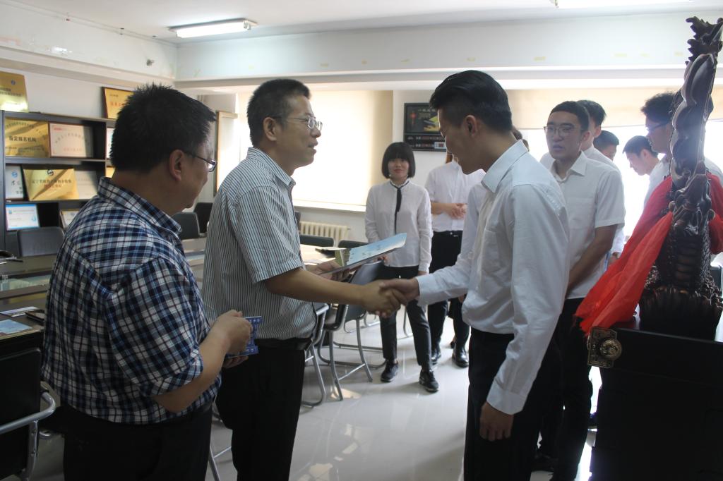 2018届校友理事会秘书长张晋源同学代表届全体毕业生对学校的培养表示感谢,并送上《一帆风顺》工艺品,以此祝福母校蓬勃发展。最后,学院领导为所有理事颁发聘书,并送上为每名学生定制的姓名钥匙扣,祝愿毕业生前程似锦,鹏程万里。