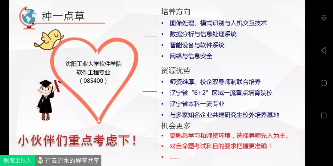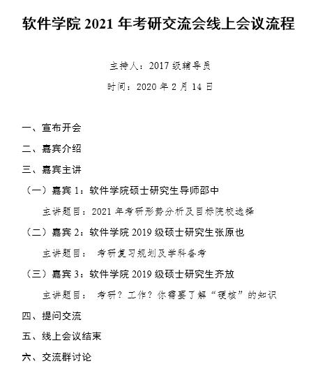 此次线上备考交流会的成功举办,不仅为有考研需求的同学们提供了交流的平台,让同学们获悉了最新的考研情况,提高学习效率,而且让广大学生在假期明确了规划和学习目标,以“停课不停学”、“放假不放松”的姿态开启人生新的一页。