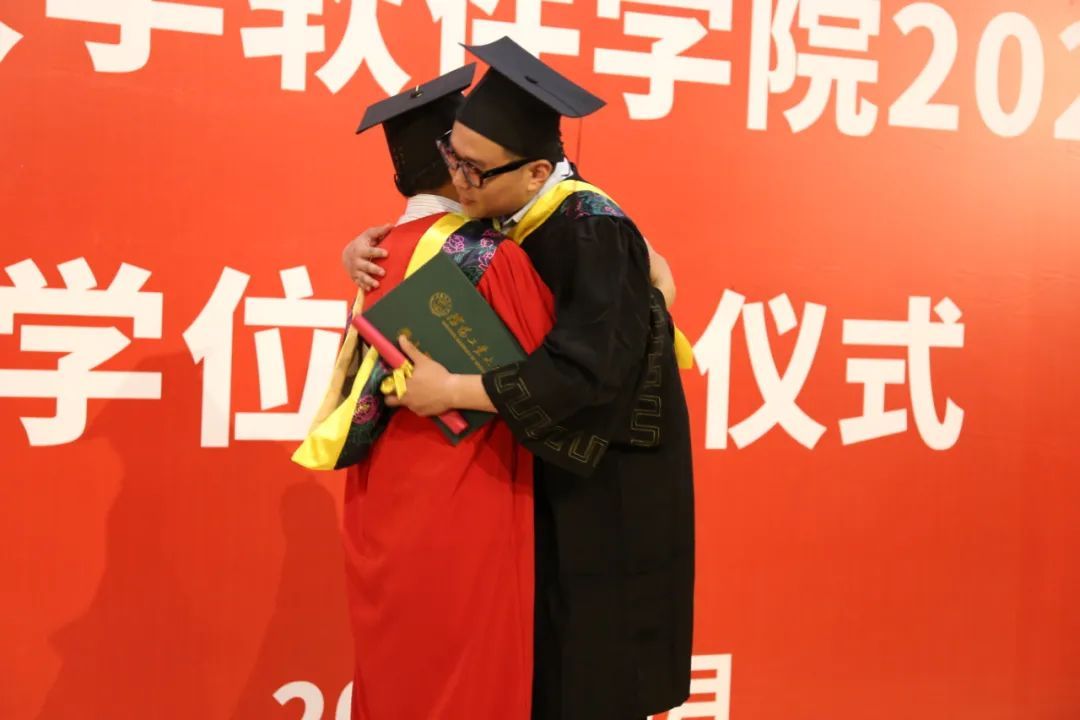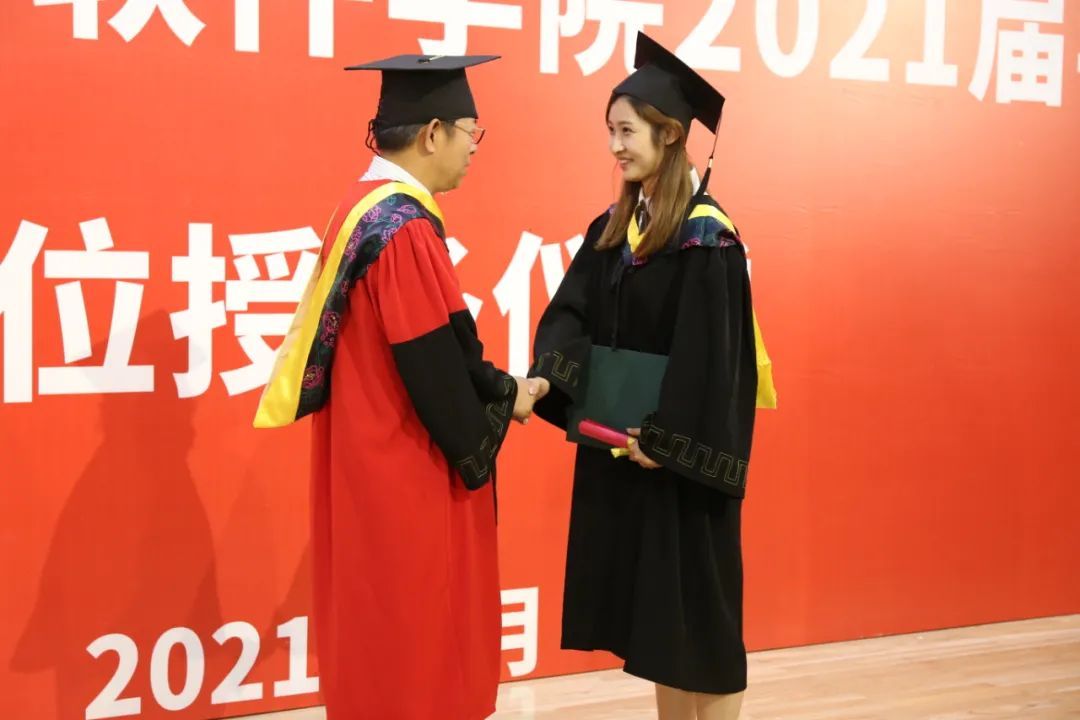 yl88858永利中国院长牛连强教授为2021届本科毕业生行正冠拨穗之礼,并合影留念。牛院长一如既往地对每一位毕业生送上祝福,“胸怀祖国,担当奉献”、“终生学习,勇立潮头”、“爱岗敬业,好好生活”、“祝你幸福”······每一句话语都是来自工大的惦念,每一句嘱托都是来自软件的牵挂。