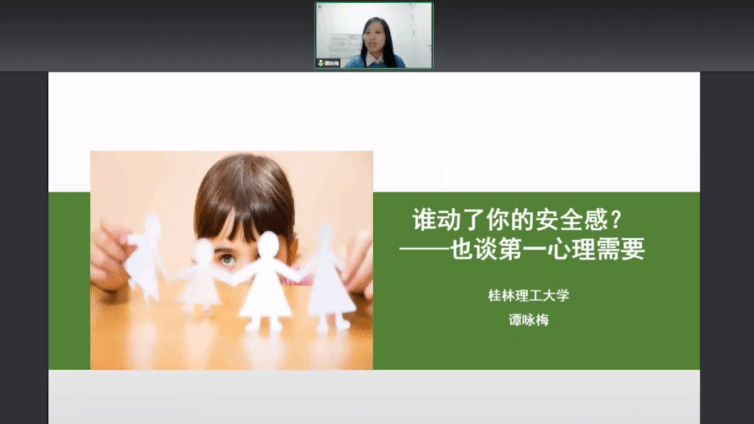 谭咏梅博士从疫情之下的全需要受到威胁谈起,延至心理安全感。着重介绍了安全感的来源、缺少安全感的体现,引导学生认识安全感的心理机制,对安全感的获得途径进行细致讲解指导。