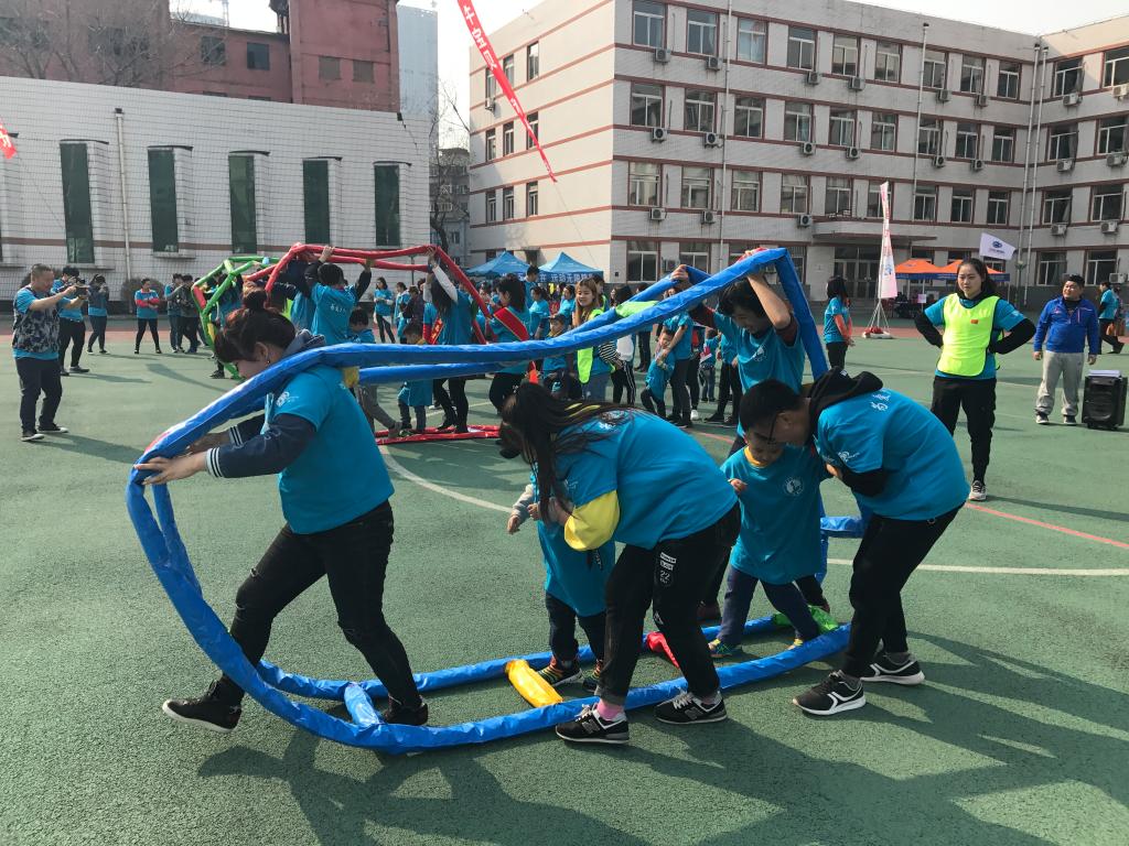 在紧张的比赛环节中,运动项目在常人看来是非常简单的游戏,注意力不集中的他们却需要在志愿者和家长的带领下完成游戏。不过课别小瞧他们,“小马过河”、“陆地龙舟”等这些趣味运动项目,被这群星童们玩出了另一种趣味。看着孩子们脸上那喜悦的笑容,就像冬日里的暖阳直击志愿者的心房。