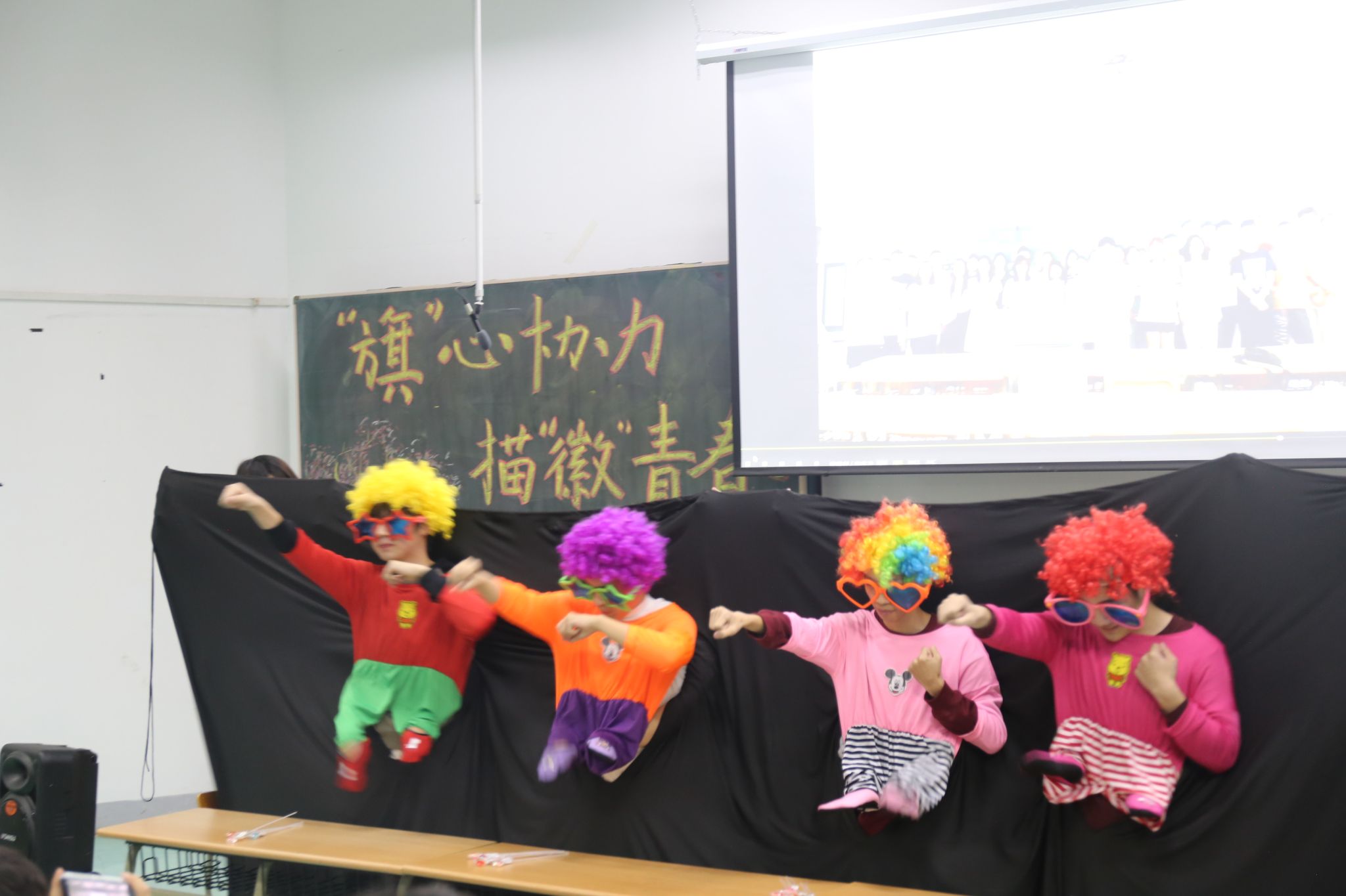 活动伊始,主持人详细介绍比赛的主题、评分标准以及相关的赛事细则。每个班级依次介绍班级的班旗、班徽以及班训的设计理念和内涵,同时也献上了充分展现班级才艺和团队精神的精彩节目。