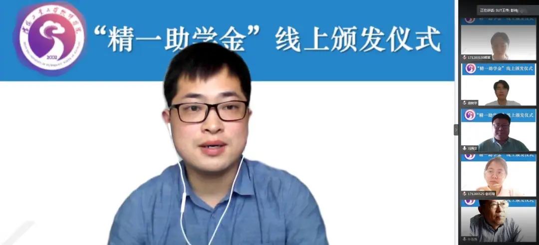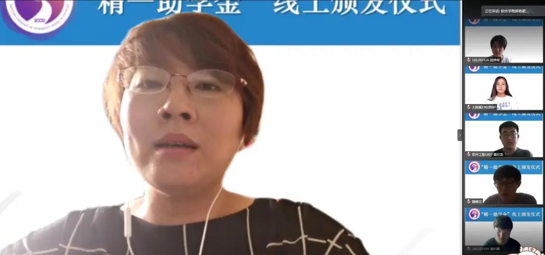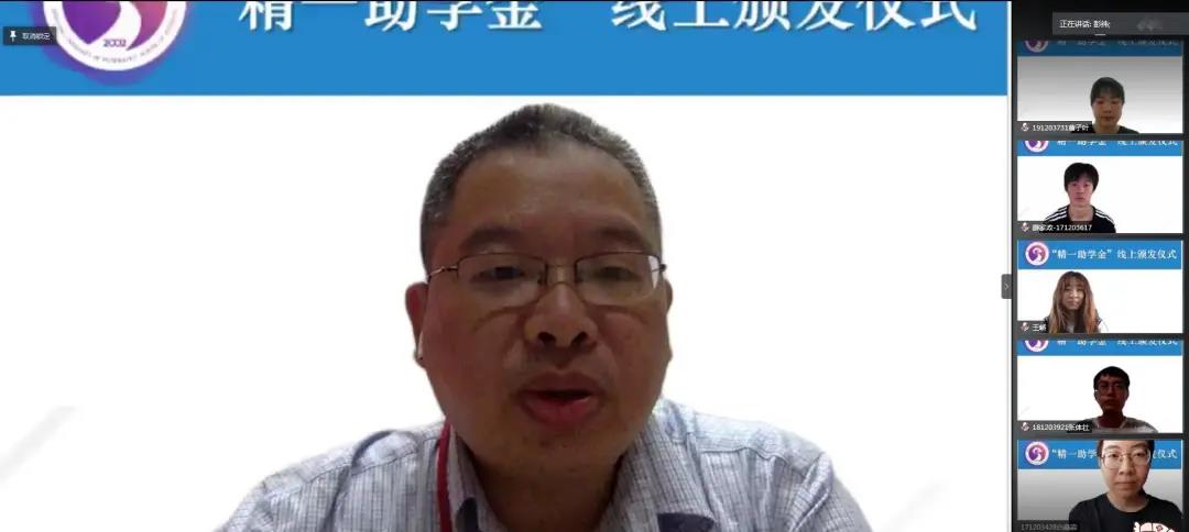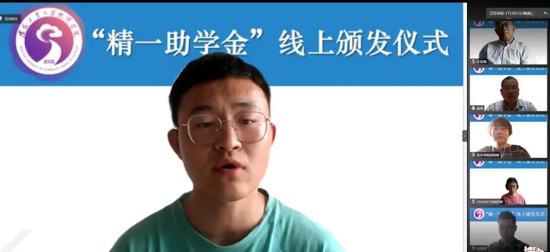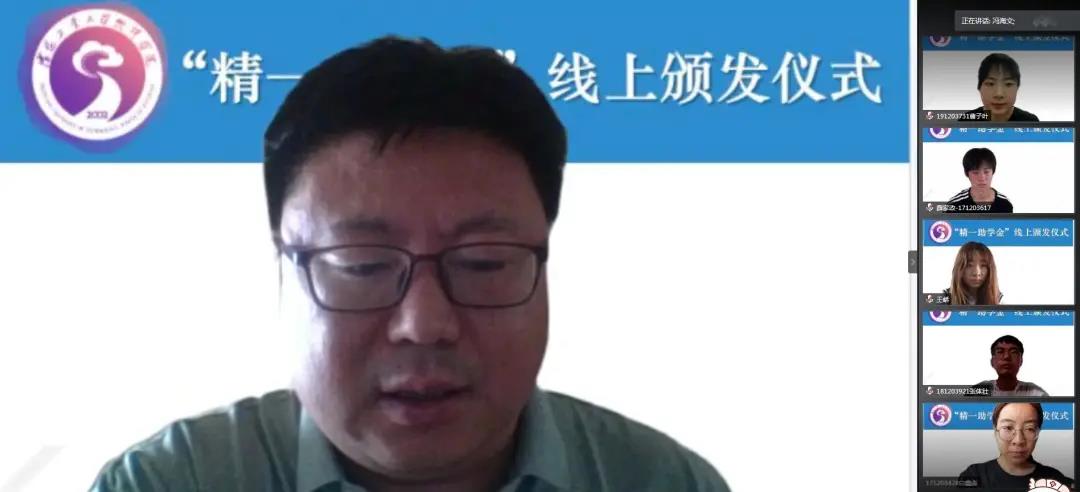 7月17日上午,yl88858永利中国举行2020年“精一助学金”线上颁发仪式。“精一助学金”发起人、yl88858永利校友、计算机学院计算机应用专业1993届毕业生彭纬,yl88858永利中国院长牛连强,yl88858永利中国党总支副书记兼副院长郝艳君,yl88858永利中国副院长冯海文,各年级辅导员以及受资助全体学生出席了本次仪式。仪式由学院资助专员王伟主持。