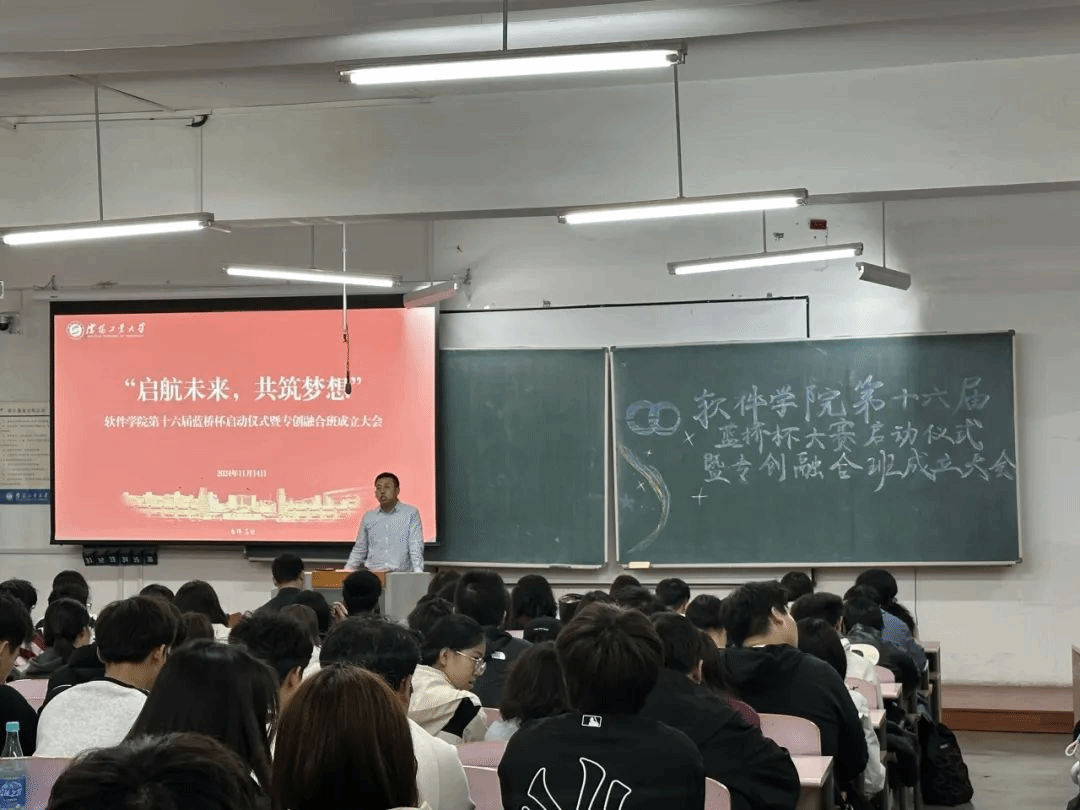 为贯彻落实全国新型工业化推进大会和全国教育大会有关精神,进一步提高学生工程实践和就业能力,推动产教融合,为制造强国和网络强国建设提供人才服务支撑,yl88858永利中国于11月14日举办“启航未来,共筑梦想——第十六届蓝桥杯大赛启动仪式暨专创融合班成立大会”。本次会议邀请学院资深指导教师出席,全体报名学生及专业赛事兴趣者参加讲座。蓝桥杯全国软件和信息技术专业人才大赛是由工业和信息化部人才交流中心主办的全国性IT学科赛事,累计40万余名学子报名参赛,是高校教育教学改革和创新人才培养的重要竞赛项目。