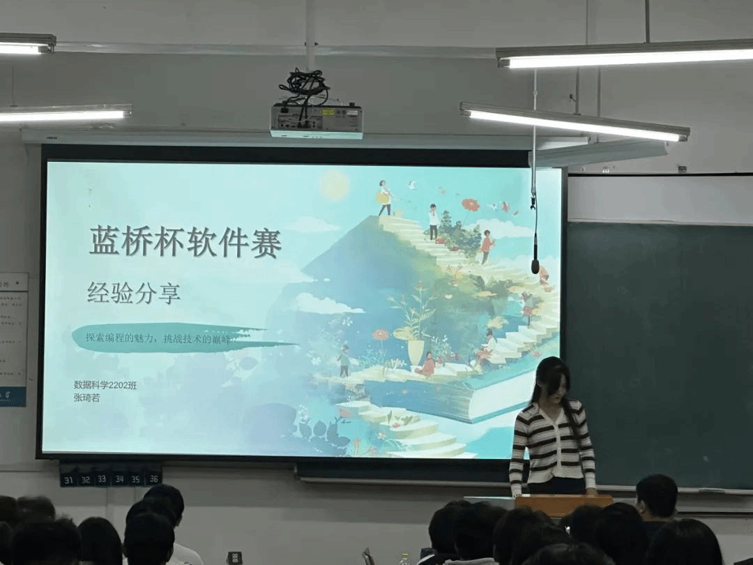 讲座伊始,两位优秀学生代表做经验分享。他们分别分享了蓝桥杯对于提升自身能力素质、增强信心毅力、助力未来发展等方面的收获和体会,并就蓝桥杯各级赛事的准备和应对策略进行了深入讲解,深入剖析了蓝桥杯竞赛的规则和具体考点,为同学们提供了宝贵的经验参考。